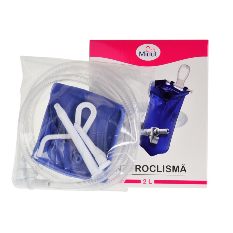 Enteroclisma Minut este realizată din PVC, pliabilă și reutilizabilă, fiind destinată atât pentru lavaj vaginal, cât și pentru lavaj rectal. În funcție de utilizare, se folosește vârful mai mare pentru lavajul vaginal sau vârful mai mic pentru cel rectal.