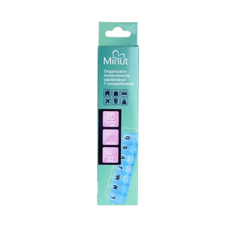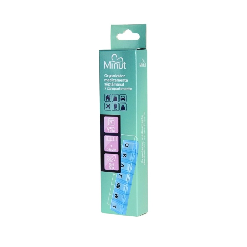 Organizatorul săptămânal Minut este un ajutor esențial pentru respectarea corectă a tratamentului, oferindu-ți control și siguranță în fiecare zi.