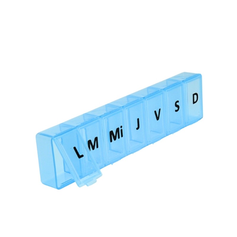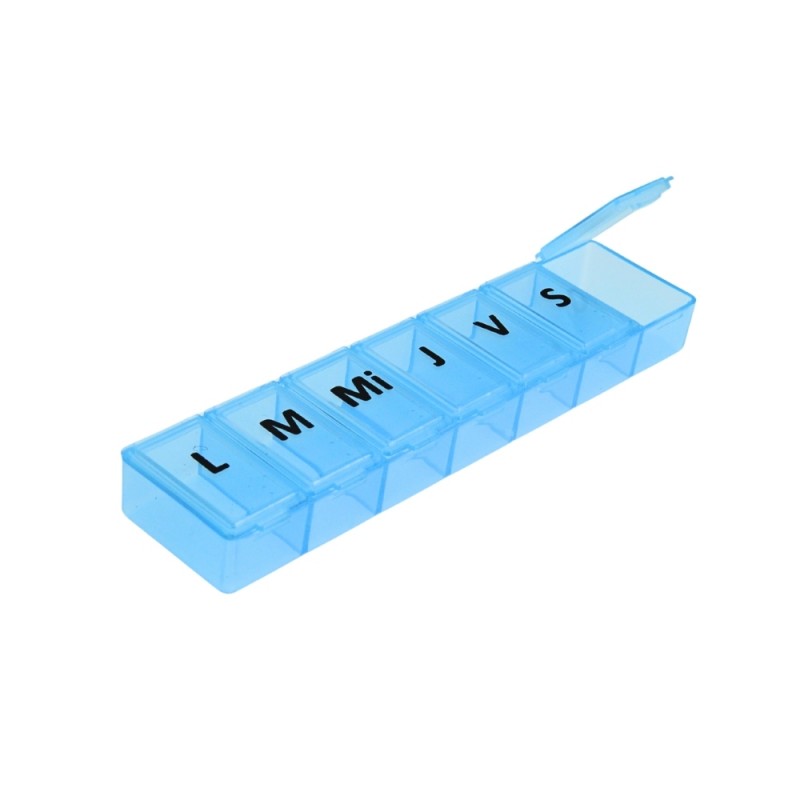 Introduceți medicamentele în fiecare compartiment, corespunzător zilei de administrare. Pe fiecare compartiment este inscrisă inițiala fiecarei zile a săptămânii. Închideți bine capacele după fiecare utilizare și verificați periodic organizarea tratamentului.