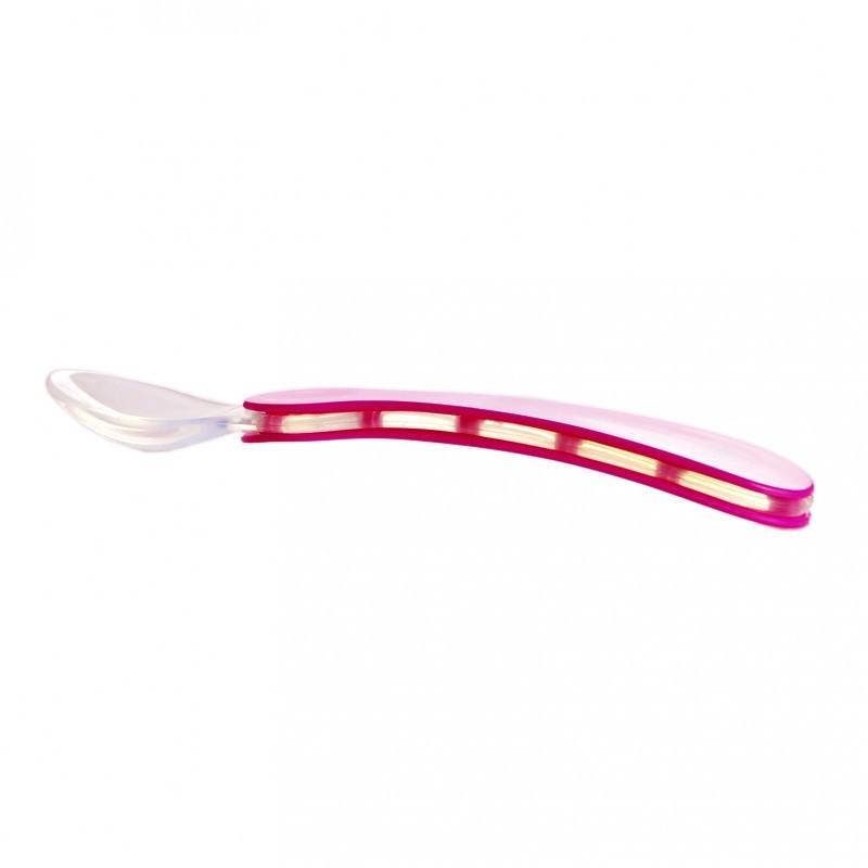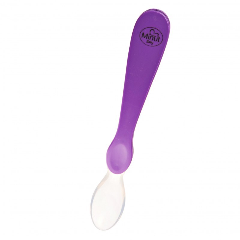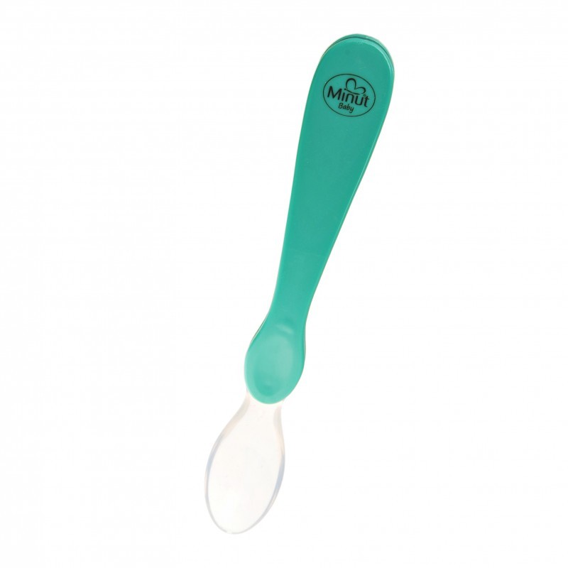 Lingurita cu varf de silicon moale Minut Baby este perfectă pentru primele mâncăruri ale bebelusilor.