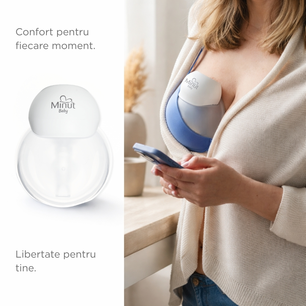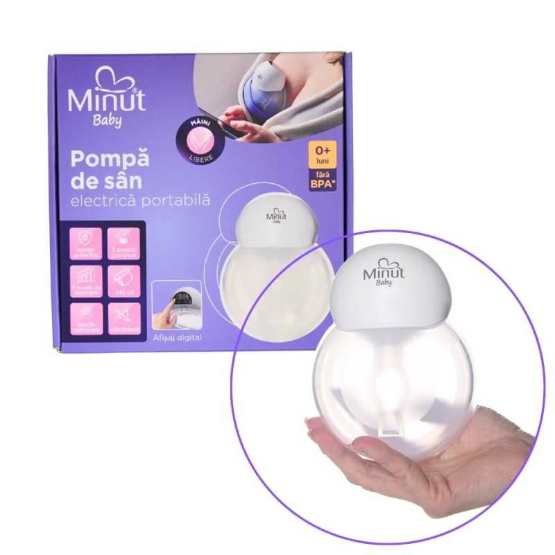Pompa de sân electrică portabilă Minut Baby: colectare eficientă, confort și mobilitate