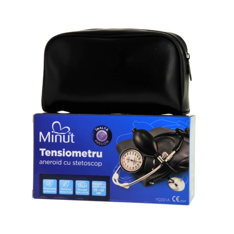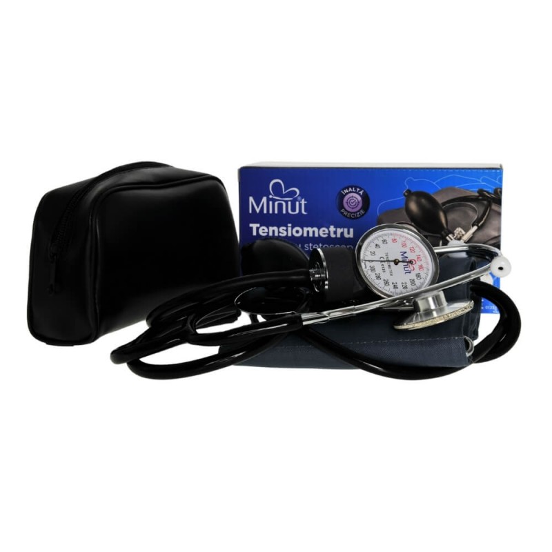 Tensiometrul aneroid Minut cu stetoscop este un dispozitiv medical fiabil și precis pentru măsurarea tensiunii arteriale și a pulsului. Echipat cu un stetoscop de înaltă calitate și o mansetă profesională, acest tensiometru permite monitorizarea eficientă a sănătății cardiovasculare, atât acasă, cât și în cabinete medicale.